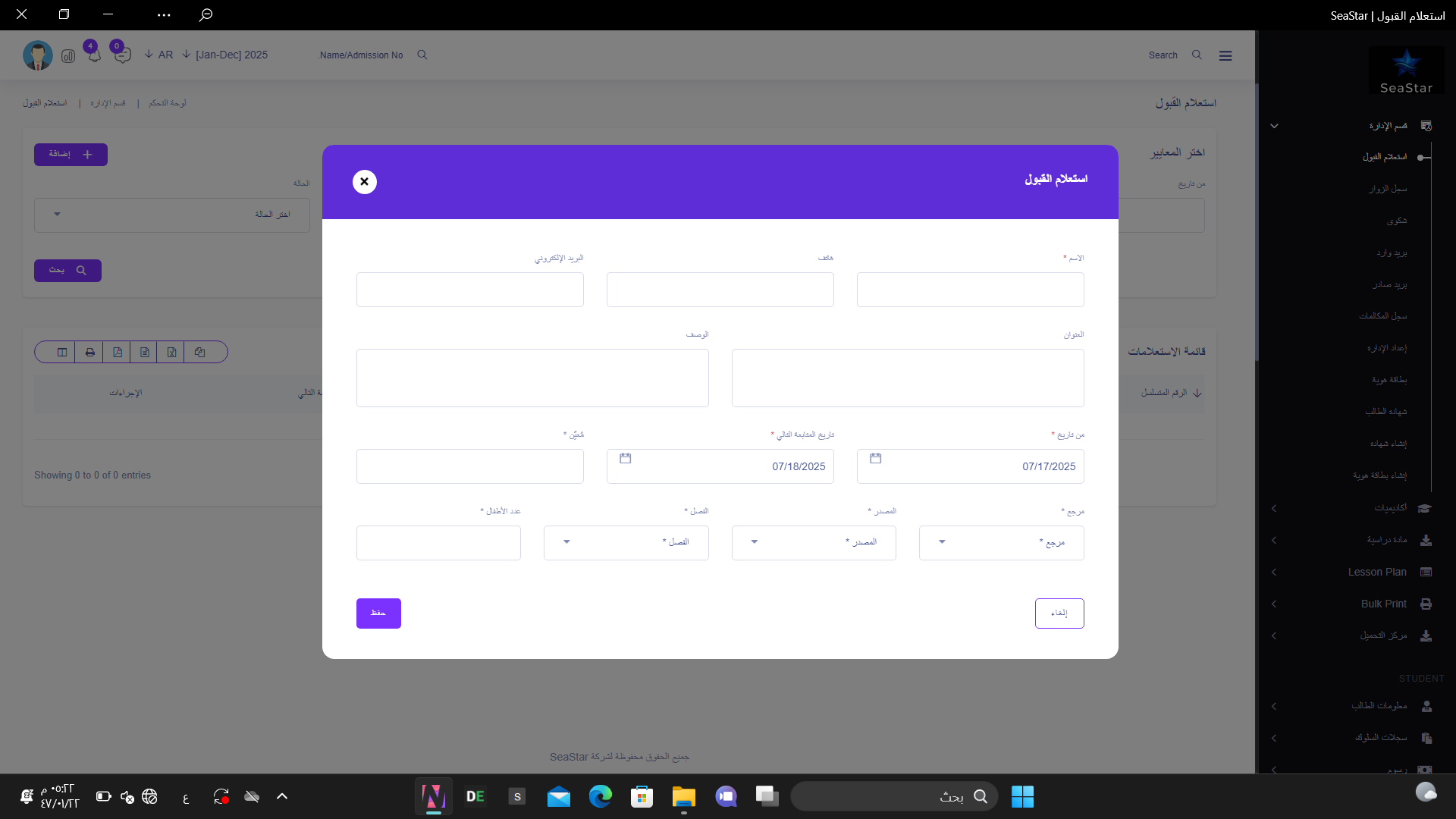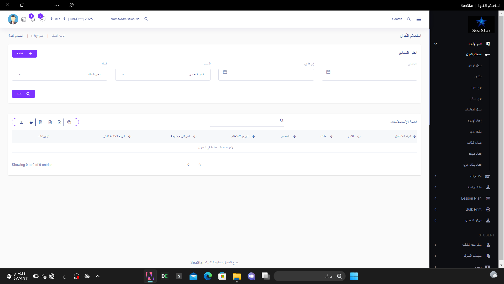 حوّل كل استفسار إلى فرصة! تتبع استفسارات القبول وتنظيمها لم يكن أسهل من أي وقت مضى. مع هذه الميزة في SeaStar، ستتمكن من إدارة جميع الاستفسارات بكفاءة، متابعة كل طالب مهتم، وضمان عدم تفويت أي فرصة للالتحاق بمؤسستك.
